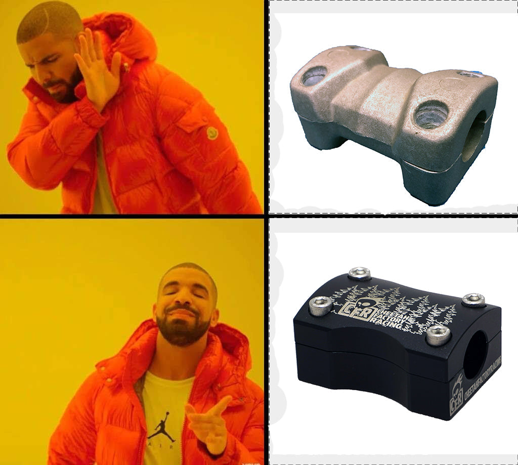 The new CFR Polaris top cap not only looks better than your stock cap but has also been trimmed down to allow 1.25” Knucks risers to be used with a tube adapter for the lowest possible setup.