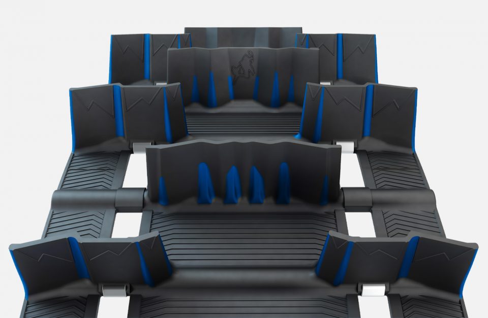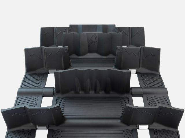 Wide, tall center paddles trap snow beneath the track, while carefully calibrated paddle stiffness and inward paddle angles minimize snow loss—delivering superior flotation and stability across all deep snow types for aggressive climbs.